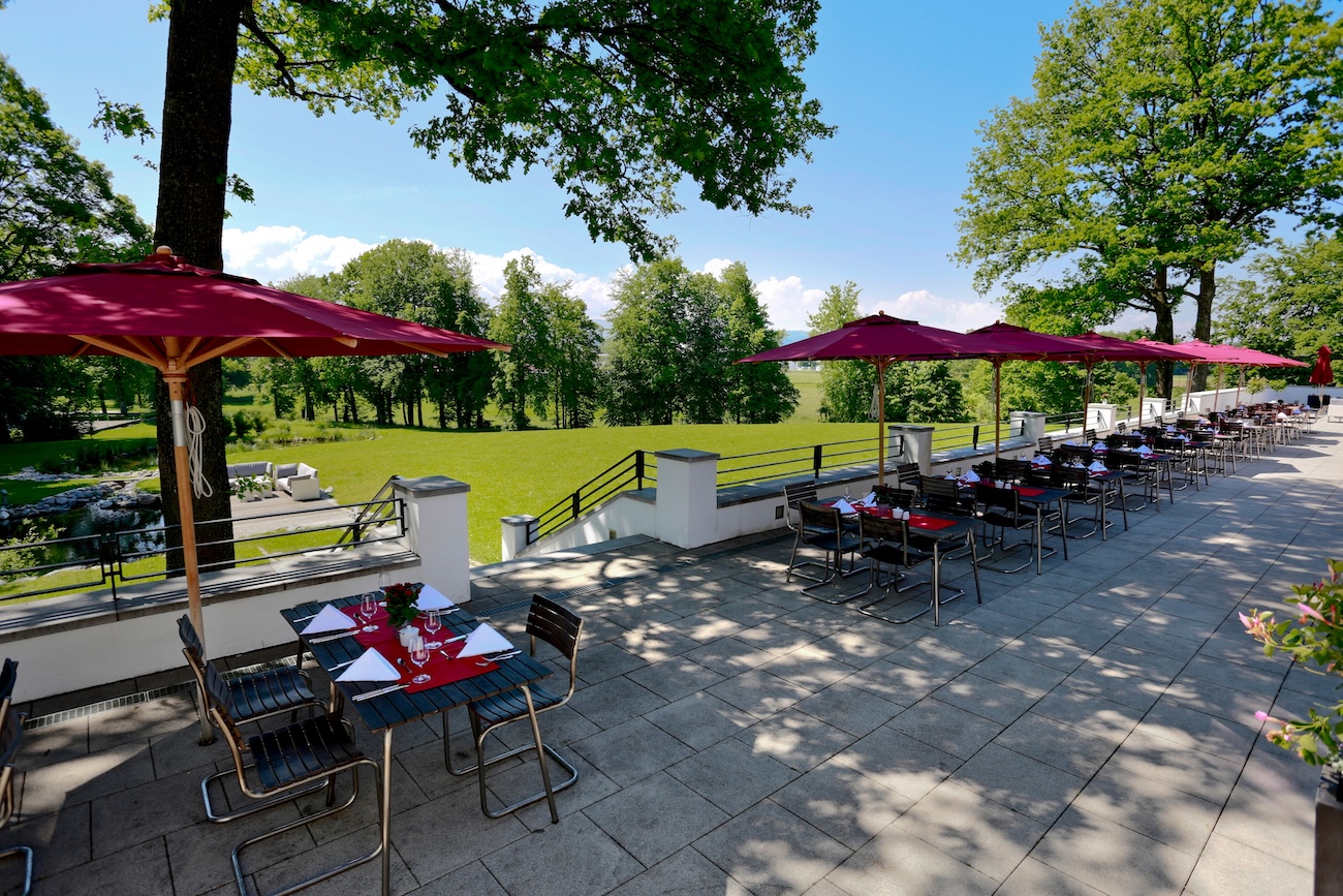 Der hoteleigene Park erstreckt sich auf 55.000 Quadratmeter und ist mit seinem alten Baumbestand, dem Naturteich sowie der Aussicht auf die bayerischen Alpen an Idylle kaum zu übertreffen. Auch Unternehmen schätzen die weitläufige Umgebung für inspirierende Pausen während Tagungen und die vielfältigen Gestaltungsmöglichkeiten von Firmenevents oder Teambuilding-Aktivitäten unter freiem Himmel.