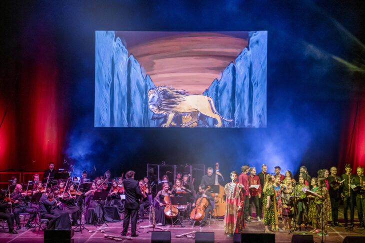 Durch kunstvolle Animationen auf der Leinwand taucht das Publikum mitten hinein in Simbas Welt: leichtfüßige Stimmung bei „Der Morgenreport“, berührende Emotionen beim Tod von Mufasa und pure Lebensfreude bei „Hakuna Matata“.