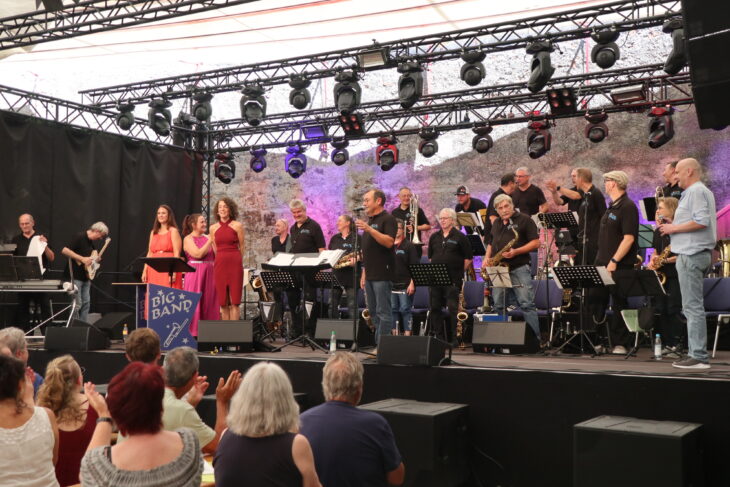 Anspruchsvolle Bigband-Arrangements von Duke Ellington, Count Basie über Glenn Miller, Sammy Nestico und Bob Minzer und vielen mehr machen den Sommer-Sonntag-Vormittag zu einem Hörgenuss der besonderen Art. Mit dabei sind die zauberhaften Sängerinnen Angelika Rembeck, Annegret Huber und Kerstin Rieger, sowie Stefan Rosenberger.