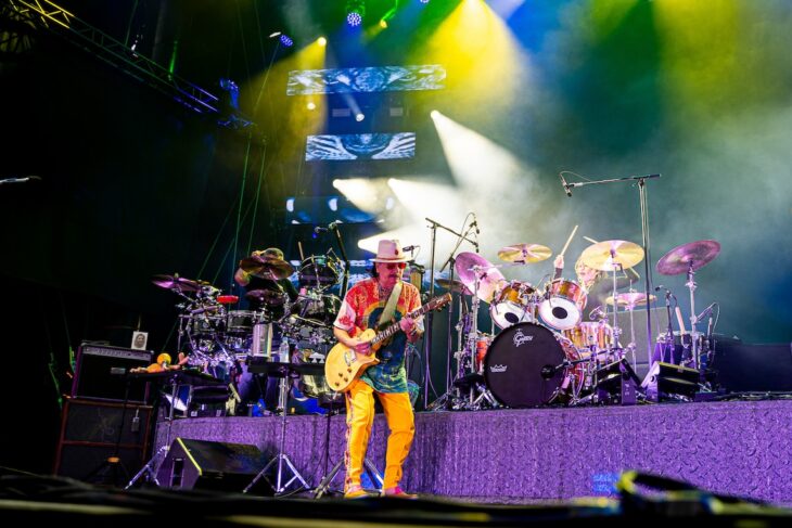 Bleiben wir vorerst bei Carlos Santana. Um seinen Stellenwert auch allen der Rock‘n‘Roll-Geschichte unbewanderten klarzumachen: Der 78-Jährige hat zehn Grammy Awards gewonnen, über 100 Millionen Platten verkauft und mit Supernatural eines der meistverkauften Alben aller Zeiten geschaffen. Wenn so einer auftritt, ist das mehr als ein Konzert – es ist fast ein religiös anmutendes Ritual. Sein einzigartiges Spiel, dieser mal singende, mal jaulende, jedenfalls immer virtuose Gitarrenton, füllte den Mangfallpark mit etwas, das man schwer beschreiben kann: eine Verbundenheit vielleicht, mit der Vergangenheit, mit diesem unerreichten Traum von „Peace and Love“, mit allen, die jemals jenen zeitlosen Soli lauschen durften. Jede Note eine Geschichte.