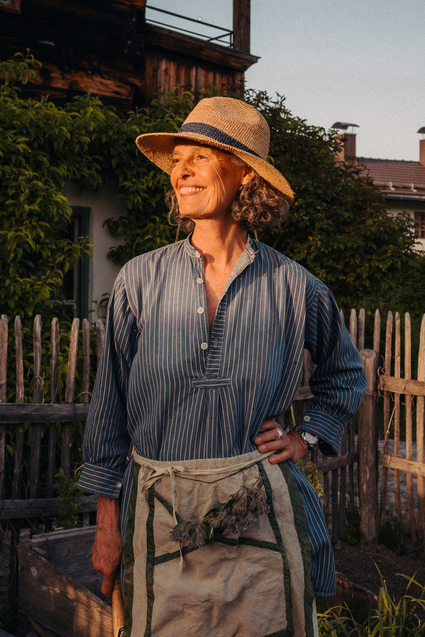 Der Ort wirkt magisch. Da wohnt man nicht einfach oder urlaubt. Da atmet man schon beim Aussteigen auf, schickt die Augen sofort auf Entdeckungsreise: Hoch, zum Dach des früheren „Großalbererhofs“ zum Beispiel, mit seinen salbeifarbenen Windbretter und der wettergegerbten Holzfassade. 1667 wurde das heute denkmalgeschützte Prachtstück erbaut und sah recht erbärmlich aus, ehe Schellings in Zusammenarbeit mit pfiffigen regionalen Handwerkern eine Generalüberholung durchführten. Oder man erfreut sich, linkerhand der Hoffront, an dem rechteckigen, üppigen Bauerngarten, in dem die Kräuter und Blumen nach den regnerischen Tagen in letzter Zeit wuchern, als wollten sie aus ihrer Umzäunung ausbrechen, um das ganze Areal zu erobern.