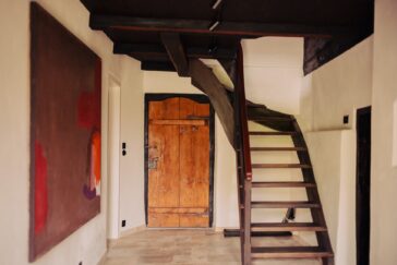 Marcus bringt sich auf seine ganz eigene Weise ein. Wenn er nicht im Beruf steckt, tüftelt er an Essig- und Spitituosen-kreationen aus Apfel oder Quitte – alle Zutaten auf den eigenen Streuobstwiesen aufgeklaubt. Wenn Gäste kosten wollen, steigt er gern hinunter in den kühlen, aus Naturstein gemauerten Keller, wo die Kostbarkeiten lagern, und kredenzt ein Fläschchen. An den Kräutern, die in etlichen Hochbeeten sprießen, dürfen sich die Gäste selbst bedienen. An lauen Sommerabenden richtet Angela gerne kleine Aperitivo-Zusammenkünfte aus. Ins Gespräch kommen, sich gegenseitig kennenlernen, das bedeutet für sie gelebte Gastfreundschaft. Mehr Geselligkeit wünscht sie sich auch für die derzeit noch als „Rumpelkammer“ zweckentfremdete Tenne. Angela träumt davon, dort irgendwann kleine Lesungen zu veranstalten, im intimen Rahmen und auf der Bestuhlung, die sie kürzlich aus einem aufgelösten Gasthaus gerettet hat.