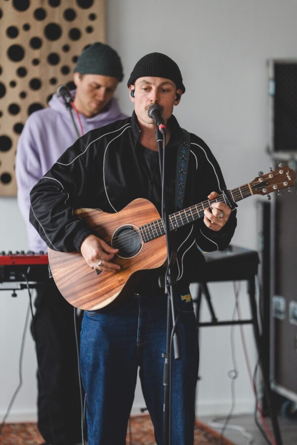 Apropos Gefühl: Wie fühlt es sich an, zu pendeln zwischen Berlin, der Weltstadt, und Rosenheim, dem Kaff? Es zeigt sich ein weiteres Dilemma. Freilich, hier sind sie aufgewachsen, hier leben Familie und Freunde, hierher kommen sie nicht nur zum Proben, sondern erden sich auch immer wieder. Die unzerstörbare Verbundenheit mit der Heimat äußert sich nicht zuletzt in den schon traditionellen „Homecoming“-Konzerten Ende jedes Jahres. Und doch ist da auch Reibung. Gerade als Künstler stößt man im ländlichen Bayern schnell an Grenzen – konservative Weltbilder, kaum Diversität, ein Hang zur Engstirnigkeit. Einen Mangel an Bescheidenheit hat Eisna den typischen Bayern mal attestiert. Darauf könnten sie inzwischen gelassen herabschauen, buchstäblich sogar, von ihrem Proberaum, da oben. Tun sie aber nicht. Sie haben sich eine angenehme Demut bewahrt. Gotti beschreibt das so: „Bis heute zieht sich das durch, dass wir immer wieder merken, krass, wir kommen eigentlich aus einem ganz anderen Bereich, wir müssen uns voll viel erst aneignen, wir haben nicht an der Pop-Akademie studiert, wir müssen uns in alles irgendwie erst reingrooven.“ Reingrooven: gutes Stichwort. Nach dem Album folgt – endlich – wieder eine Tour. Die Kaffeemaschine hier im Proberaum wird noch oft heißlaufen, bis es Anfang April heißt: „Vorhang auf“.