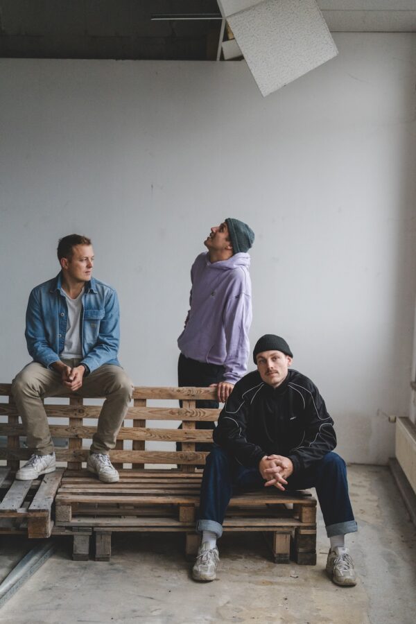 Draußen, vor der Fensterfront, wabert eine Nebelsuppe durch das Gewerbegebiet, in dem der Proberaum der fünf Musiker liegt. Sie hausieren in einem arg vernachlässigten Gebäude, das einmal ein Möbelhaus beherbergt hat, heute aber eher wie einer jener Lost Places wirkt, die gerne als Kulisse für Horrorfilme herhalten müssen. Ein düsteres Treppenhaus, zerschlissene Teppiche, ein ganzes Stockwerk voller vergessenem Elektroschrott, hier und da hängen Kabel aus der Decke. Und ganz oben: das Domizil von Kaffkiez, eine Oase der Heimeligkeit inmitten des Zerfalls. Perserteppiche, eine Art Lounge-Ecke mit Couch, Sessel und Spielekonsole, an den Wänden schicke Schallabsorber in Holzoptik, ein Schwarz-Weiß-Poster von einem Konzert; in einer Ecke die Instrumente, emporragend aus einem undurchschaubaren Kabelgewirr, am anderen Ende ein Klavier. In dieser Kulisse empfangen uns drei der fünf Bandmitglieder: Johannes (Eisna) Eisner, Johannes (Gotti) Gottwald und Benedikt Vodermaier. Hinter ihnen liegen lange Tage und Nächte im Berliner Studio.