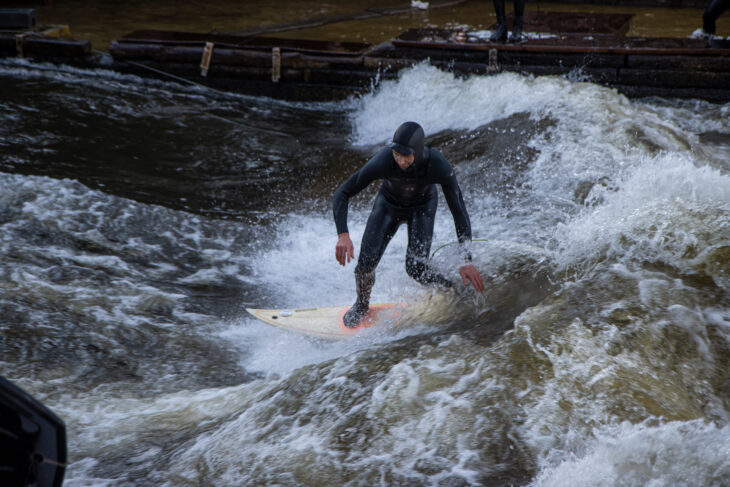 Wer Finn im Winter am Berg erlebt, kann sich kaum vorstellen, dass er einige Monate später in München an einer stehenden Welle balanciert. Surfen am Eisbach ist sein Kontrastprogramm, ein lässiger Ausgleich. „Du hast keine Pulsuhr, keinen Plan“, sagt er. „Du willst einfach die Welle gut erwischen.“ Timing, Balance, Körperspannung – überträgt sich das auf den Berg? „Vielleicht unbewusst. Es tut einfach gut, auch mal etwas ganz anderes zu machen.“ Das Bild passt: Ein Athlet, dessen Sport von Effizienz lebt, findet Erholung in einer gleitend-eleganten Bewegung am Fleck.